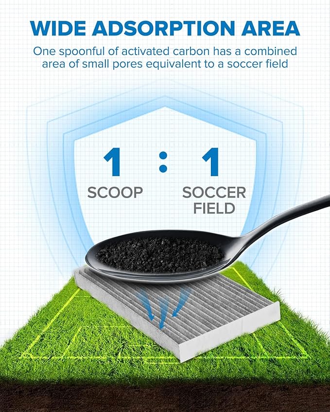 - Enjoy Fresh Air: PHILTOP ACF046 cabin air filter is made of three high-efficiency filter materials: long fiber electrostatic cloth, activated carbon, and acrylic resin coated filter paper, which can filter up 99% of dust, pollen, and other contaminants in the air, provide a comfortable car environment for you and your family