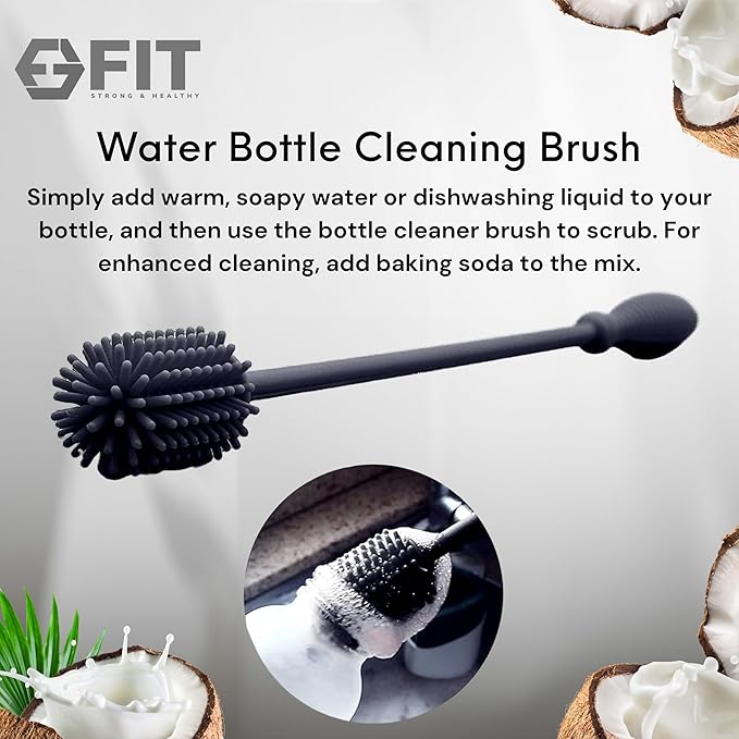 - Water Bottle and Cleaning Brush Set: Upgrade your hydration routine with our 32 oz Glass Water Bottle with Time Marker and Cleaning Brush Set; this version features an extra thick silicone sleeve for extra protection, insulation, and a secure grip; we've also upgraded one of the lids to a straw lid for sipping on the go; the 32-inch Water Bottle Brush is made from durable silicone material, which effectively removes dirt and residue; plus, it does not absorb unpleasant odors and stains