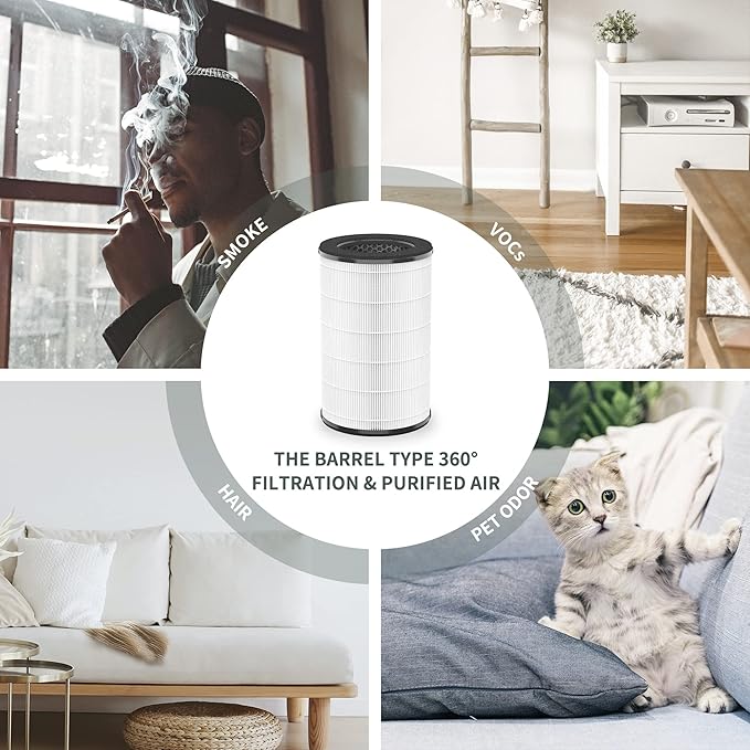 - Breathe Earier: 360-degree H13 Grade True HEPA filtration rem0ves up to 99.97% of airborne particles as small as 0.3 microns. Keep your home, office and bedroom free of dirt and other pollutants, improve your indoor air condition to breathe and sleep at ease
