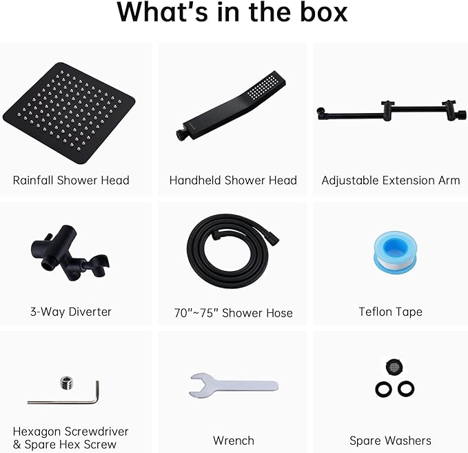 - 3-WAY DIVERTER AND EXTRA LONG HOSE:The diverter convert water from rainfall shower head and handheld conveniently. Two shower head can use together(water pressure is HALVED). 71" long hose makes rinse the bathroom with ease