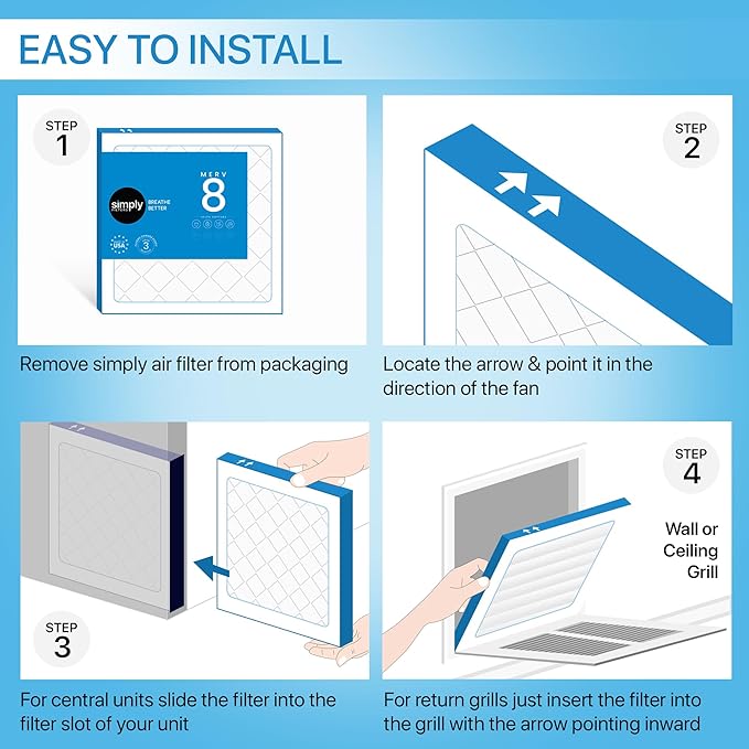 - Long-lasting Filtration & Easy Installation: Enjoy up to 3 months of resilient filtration. Hassle-free replacement for air conditioning units or HVAC systems. Follow airflow arrows and insert into the filter slot for central units or return grilles.