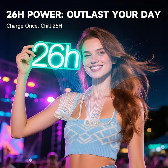 - ⏳ 26-HOUR MARATHON COOLING: Massive 5000mAh battery outlasts rivals (2.5x longer). Enjoy all-day hikes, flights, or back-to-back meetings on one charge