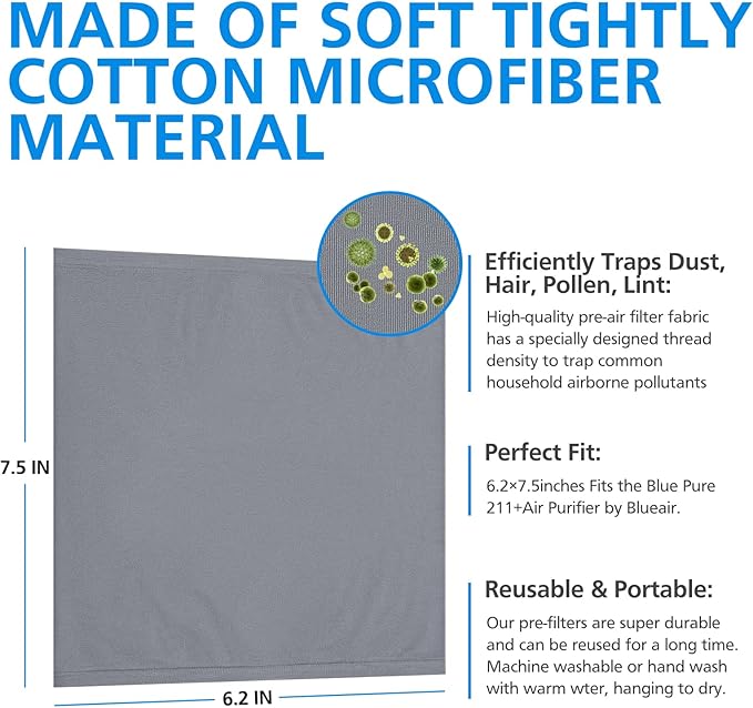 - EFFECTIVE FILTRATION: Cabiclean 4 pack 211+ replacement pre-filter for Blueair Blue Pure 211 + air purifier, effectively prevents larger particles from reaching your main filter, extending its life and maintaining optimum filter performance for longer