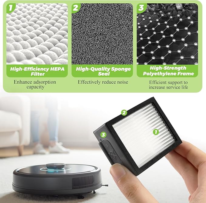 - ✔✔【REPLACEMENT FOR ROOMBA HIGH-EFFICIENCY FILTERS】▶Replacement for i-robot roomba hepa filters are made of high-quality non-woven polymer and ABS frame, using high-strength materials. It is a substitute for i3 filters with high filtration efficiency and durability ▶The edges of the roomba i7 filters replacement are perfectly integrated with the plastic frame, the entire filter is completely sealed, and each filter contains a large number of wrinkles to effectively remove various impurities and provide a fresh air environment
