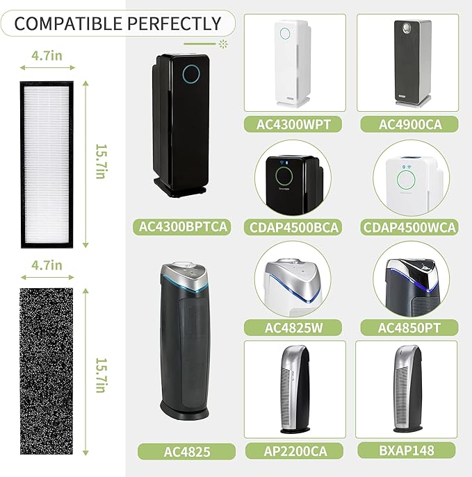 - Cost-Effective Package: AC4825 replacement filter combo contains Extra 6x carbon pre-filters and 2x H13 HEPA filters. By choosing our products, you can get all the benefits of original air filters and save much cost for all-year round air cleaning need