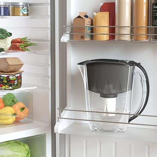 - Perfect Fit for Most Fridge Doors. Ideal for Home or Apartment Living. Comes complete with 1 x B15 Filter cartridge. Easy and Convenient to Use: The pour-through lid allows for easy filling, and the battery-free filter life counter ensures you can keep track of the filter life.