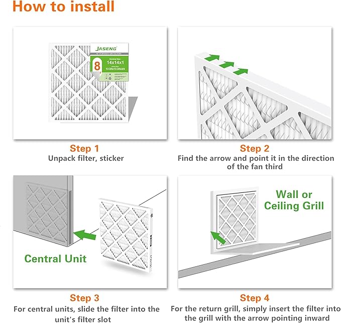 - JASENG 14x14x1 Air Filter has more pleats than other air filters, can provide better air coverage and dust filtering effect, also helps prolong use life of your furnace and HVAC system.
