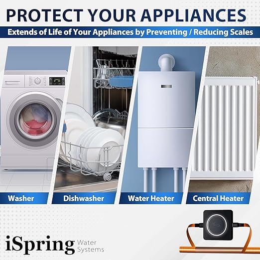 iSpring ED2000S Whole House Descaler, Alternative Electronic Salt-Free Hard Water Conditioner, Breathing LED Light Design with Magnet, Prevent Rust and Scale Build-up, Black