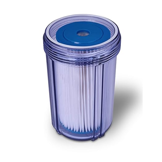 - π DURABLE STRUCTURE: 10βx 4.5β Transparent High Capacity Housing is proper for high-flow and heavy sediment applications. The housing body is made of reinforced polypropylene for strength and resistance to chemicals, and the black cap is made of high-flow polypropylene for toughness. The cap has 1" inlet / outlet brass ports which allowed better sealed connections to the corresponding pipes. 10βx 4.5β Pleated Washable Sediment Water Filter-Used for effectively removing most sediments from water