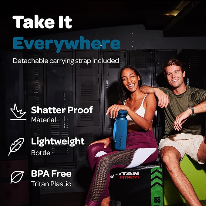 - 🌱SAFE, NON-TOXIC, DURABLE This shatterproof, light and reusable water bottle is made of 100% BPA Free Tritan plastic. You can relax and enjoy your water clear of harmful chemicals, plastic taste or bad smell!