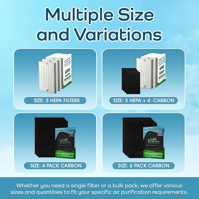 Breathe Naturally "R" Replacement Filters Compatible with Honeywell Air Purifier HPA300 or or HRF-R3 Series - Activated Carbon Prefilter - 14"x17.2"x0.2" (3 HEPA Filters + 4 Carbon Prefilters)