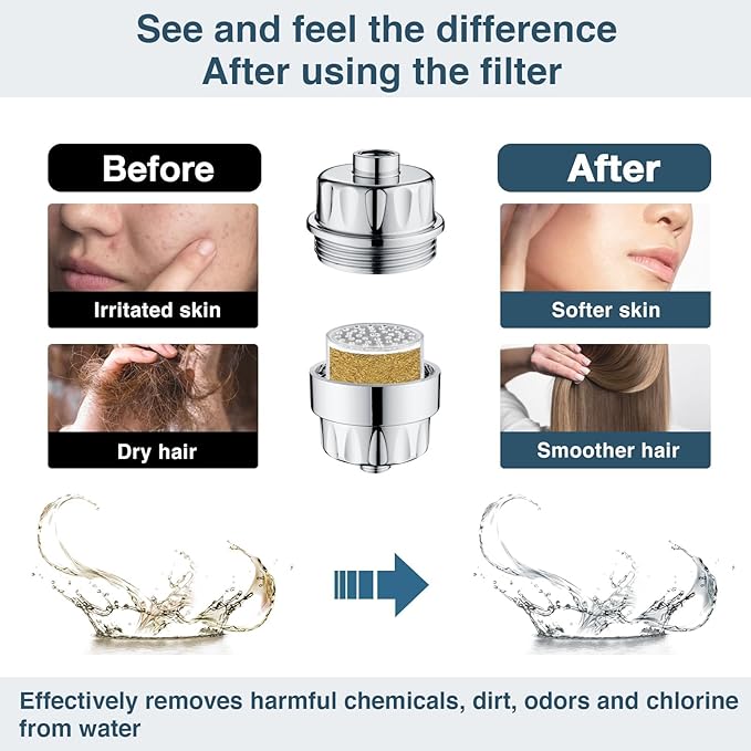 - Powerful Filtration System - This shower water softener acts as a moisturizer, purifier, softener and provides the better feeling for sensitive skin so you look better, skin feels cleaner and enjoy your skin. Activated carbon removes volatile organic compounds, taste, odor and chlorine from water, relieves fatigue quickly, slows down aging and makes your skin smoother