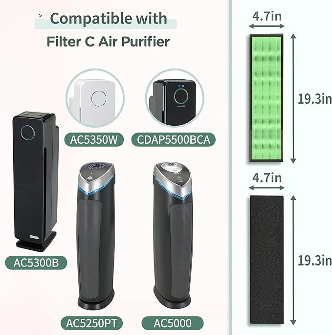 - Fit Like A Glove: FLT5000 Filter-C true HEPA replacement filter totally compatible with Ger-Guardian True HEPA filter (Ger-mGuardian Filter C) for models AC5000 AC5000E AC5250PT AC5350B AC5350W AC5300B CDAP5500BCA Black + Decker model BXAP250 and IAP-GG-125, replace Part# FLT5000, perfect performance as the original AC5300B filter