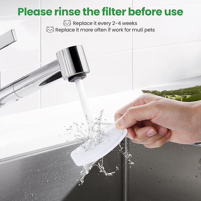 - Replace Regularly: Suggest replacing cat fountain filters and sponges every 2 weeks, please change it more often if your water fountain serve multiple pets, can effectively keep water fresh, clean and healthy for your pets, effectively prevent kidney disease