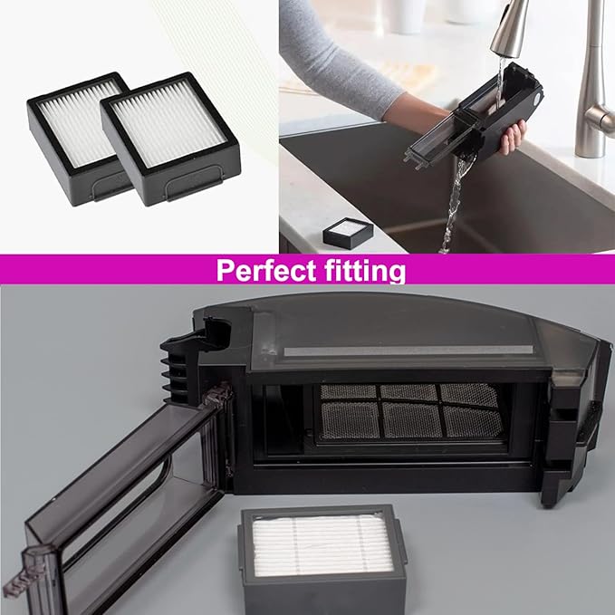 - {HIGHLY EFFICIENT ROOMBA REPLACEMENT PARTS}-Two premium quality Multi-Surface rubber brushes are perfectly matched, one for peeling off dirt and the other for sweeping dirt. The edge-sweeping side brush reaches deep into corners and edges to remove more dirt, dust and debris. The cleaning filter blocks 99.97% of pollen, dirt, dust, pet dander and other particles as small as 0.3 microns in size.