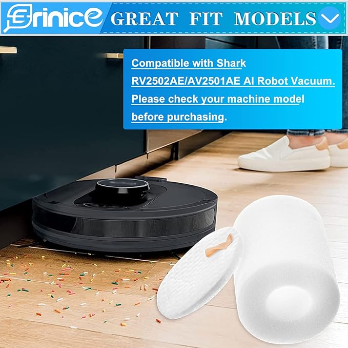 - 【PREMIUM QUALITY】 Our rv2502ae replacement filter for Shark AI robot is made of premium foam felt material to keep the vacuum cleaner's suction. Our ur2500sr filter part can capture 99.7% of contaminants and impurities before it damages your motor and prevent them being released directly back into the air flow. It can help capture dust particles, dirt, food scraps and pet dander while cleaning different surfaces,which has greatly improved the suction performance of shark vacuum model av2501s.