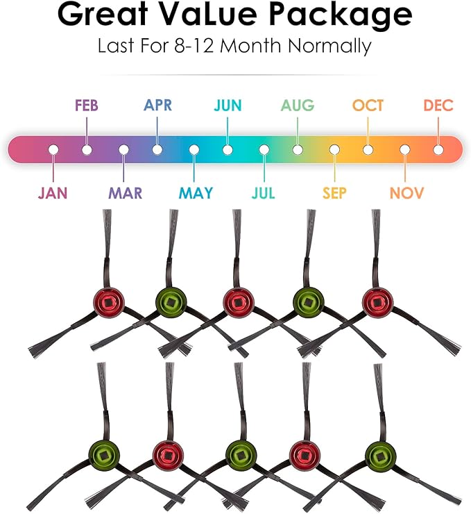 - 【Premium Materials】With excellent workmanship, the side brushes are made of environmentally friendly materials and will not have any pollution to the environment. The bristles on our side brushes are made of premium nylon, which are more durable and clean better than the brushes of other brands.
