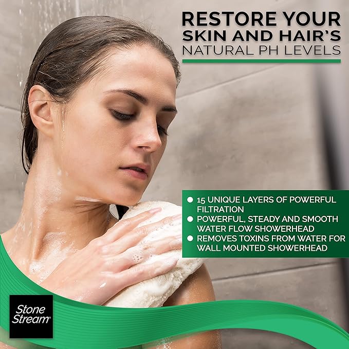 Original StoneStream Filtered Showerhead + 15 Stage Hard Water Shower Filter (HWF) Combo, Removes Chlorine and Other Substances from Hard Water
