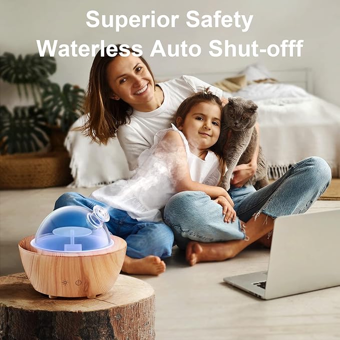 - 【Large Water Tank Capacity & Auto Shut-Off Function】The water tank capacity of this essential oil diffuser is 280ml, which allows you to enjoy the aromatherapy value for a longer time. The diffuser will automatically shut off once the water runs out, ensure safe use and prolong working life.