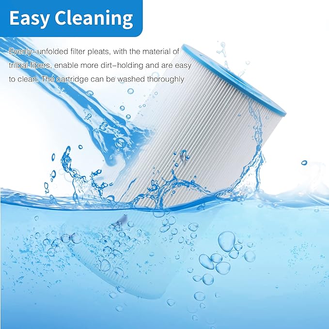 - 【EASY TO CLEAN】The Trilobal Fabric Structure filter material makes it easy to release impurities when cleaning the filter, the filter is like a new one after cleaning. It is recommended that you clean cartridges every 2 weeks to maximize your spa's performance.