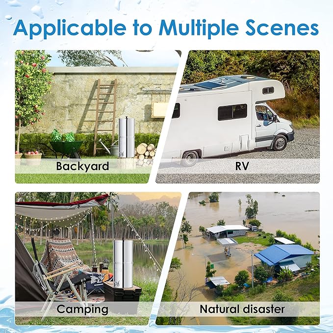 - Large capacity: The Waterdrop King Tank gravity-fed water filter system is a home water filtration system and comes with a 2.25-gallon large capacity, thereby meeting water demands of a family of 4 people for pure water indoors and outdoors.