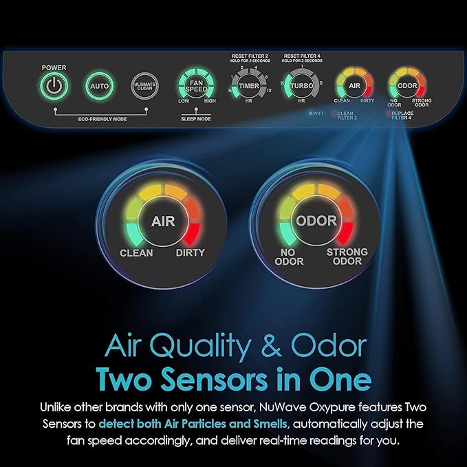 Nuwave Oxypure Ultra Clean Air Purifiers for Extra Large Room, Office, 5 Stage Filtration System with 4 Extra HEPA/Carbon Filters, Remove 100% of Dust, Pet Dander, Odors, Pollen, VOCs (Renewed)