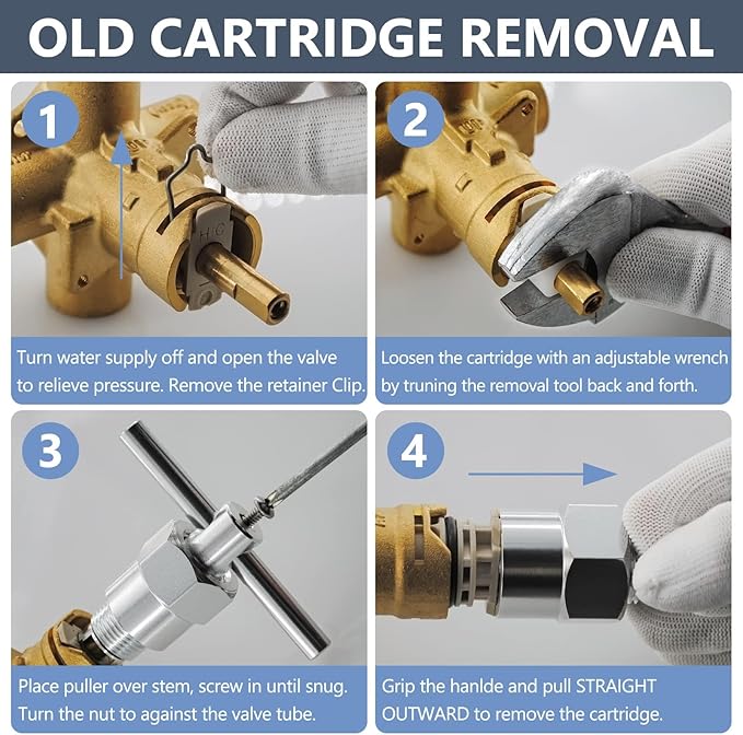 - 104421 Cartridge Puller Tool: Remove for moen 1222 cartridge without risk to damage your plumbing, hassle-free for replacing for moen shower cartridge