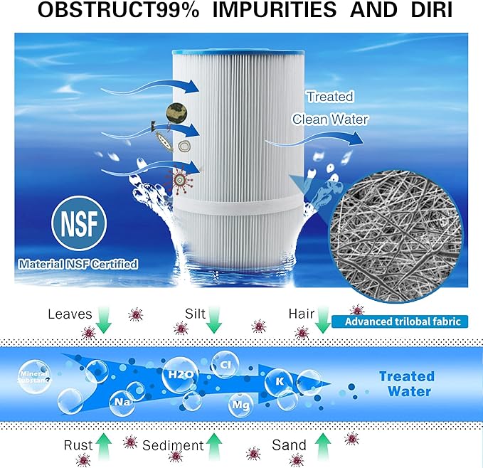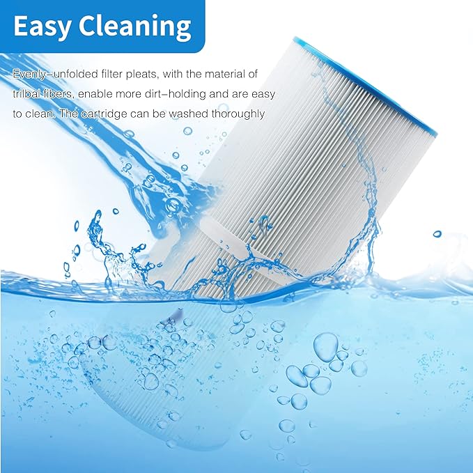 - 【EASY TO CLEAN】The Trilobal Fabric Structure filter material makes it easy to release impurities when cleaning the filter, the filter is like a new one after cleaning. It is recommended that you clean cartridges every 2 weeks to maximize your spa's performance.