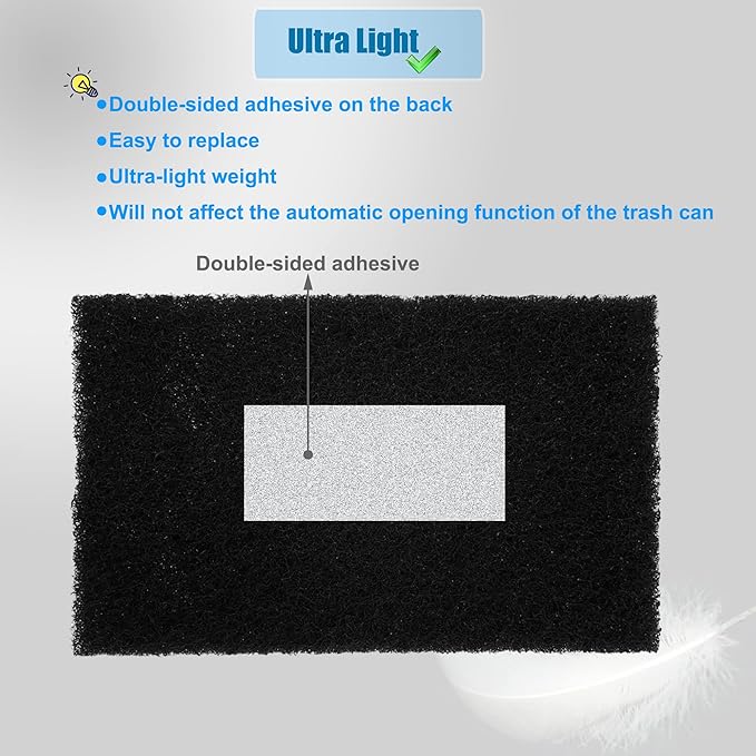 12-Pack Universal Stick-on Trash Can Odor Absorbing Filters, Activated Charcoal Purifying Deodorizer for Trash Cans, Compost Buckets, Countertop and Recycle Bins (Rectangle)