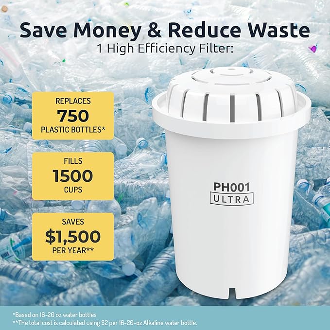 - ENHANCED PH001 ULTRA FILTRATION - Discover our advanced PH001 Ultra alkaline water filter, engineered with multi-layered filtration media, upgraded extra-porous carbon powder, and multiple membrane filters, for up to 15% enhanced filtration.