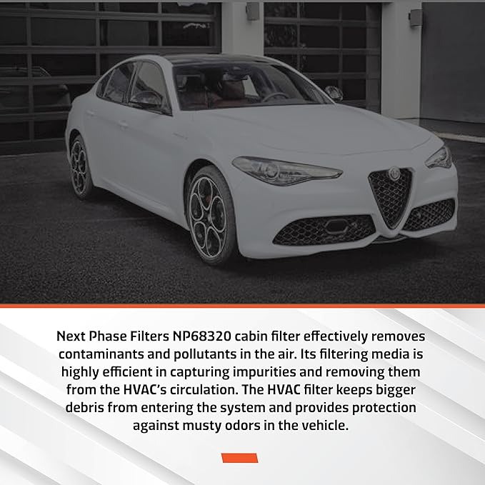 - Pack of 1 Cabin Air Filter Replacement Compatible with - 2017-2022 Alfa Romeo Giulia 2.0L & 2.9L and 2018-2022 Stelvio 2.0L & 2.9L, our cabin filters are designed to fit perfectly in your vehicle. Next Phase NP68320 replaces O.E. 68320112AA; Champ CAF10008P.