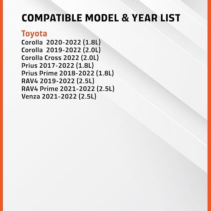 - Compatible Devices : 2020-2022 Toyota Corolla 1.8L, 2019-2022 2.0L, 2022 Corolla Cross 2.0L, 2017-2022 Prius 1.8L, 2018-2022 Prius Prime 1.8L, 2019-2022 RAV4 2.5L, 2021-2022 RAV4 Prime & Venza 2.5L 2020-2022 Toyota Corolla 1.8L, 2019-2022 2.0L, 2022 Corolla Cross 2.0L, 2017-2022 Prius 1.8L, 2018-2022 Prius Prime 1.8L, 2019-2022 RAV4 2.… See more