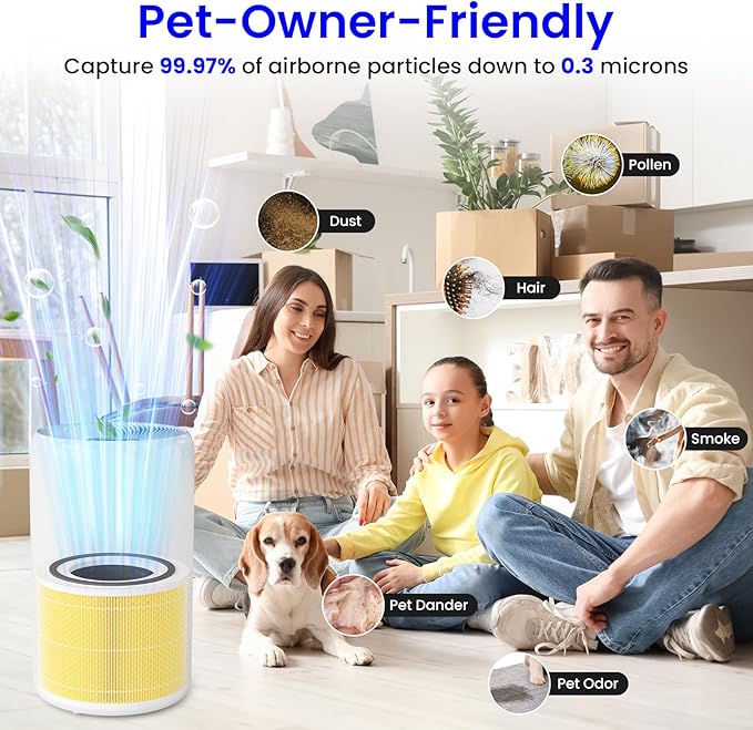 - Ideal for Homes with Pets: Core 300-P pet dander air purifier filter features a 3-stage filtration system with Pre-Filter, True HEPA Filter, and Activated Carbon Filter to effectively reduce pet dander and pet odors, minimizing pet irritants to create a fresher, pet-friendly home environment.