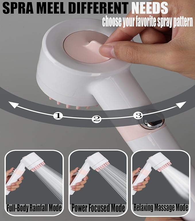- ▶【Handheld Shower Head Set:】: The shower heads set high packages include necessary accessories ,1*multifunctional high pressure Handheld Shower, 59 Inch Hose, 3* Extra filters(one is spare), 1*adjustable mount holder ect. Get your shower head installed in minutes without asking for help! Let your families enjoy massage and SPA.