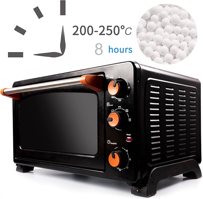 - 【How to Regenerate】: 1. Use the dry gas under lower pressure or higher temperature to pass the activated alumina. 2. Use wet gas which is heated or decompressed to pass the activated alumina. The reusable activated alumina beads desiccant dehumidifier can be reactivated by placing into the oven for 8 hours at 200°C-250°C (do not over 250°C).