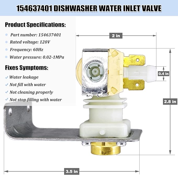 - COMPATIBLE BRANDS: The 154637401 Water Inlet Valve is made fit for some specific dishwasher models. (It is not universal, please check the compatibility before purchasing.)