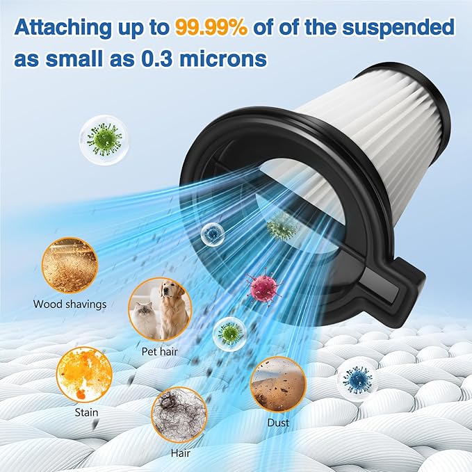 - HEPA Filtration for Enhanced Cleaning: These HEPA Filter for Wyze is made of premium environment-friendly materials, Captures 99.97% of dust, and pet hair as small as 0.3 microns. The 5-layer filtration system and reinforced ABS frame prevent air leakage, maintaining strong suction power for Wyze cordless vacuum.