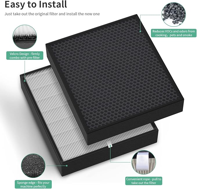 - 【3-in-1 Design】The filter adopts a three-in-one filter design, including a pre-filter, HP filter and an activated carbon layer.