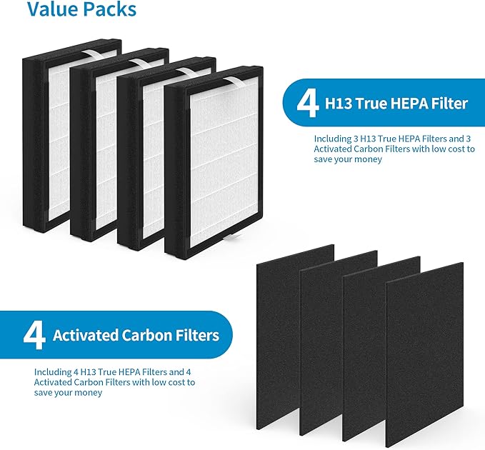 4 Packs IAF-H-100A Idylis A Replacement Filter Compatible with 3M Filtrete FAP-C01-A Idylis AC-2119 IAP-10-100 IAP-10-150 IAPC-40-140 Air Purifi-ers Part# 1150096 4 Premium Filters+ 4 Carbon filters