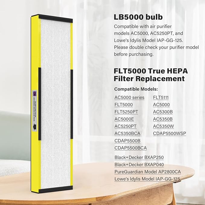 - FLT5000 filter true hepa replacement filter Compatible with models AC5000, AC5000e, AC5250pt, AC5350b, AC5350bca, AC5350w, AC5300b, cdap5500bca, cdap5500wsp.