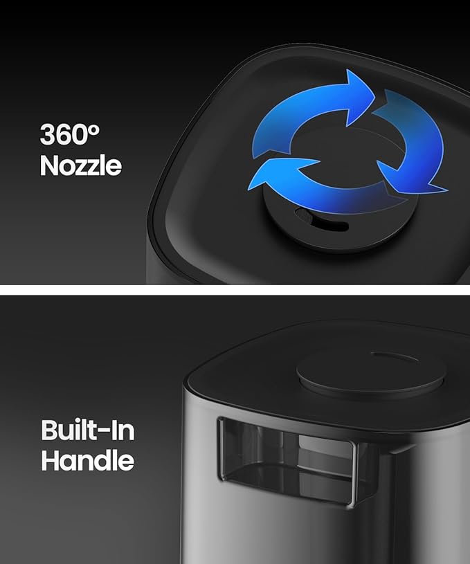 - CONTROLLED COVERAGE: With the 360° nozzle, you control the direction of the mist, providing focused humidity where it's needed most.