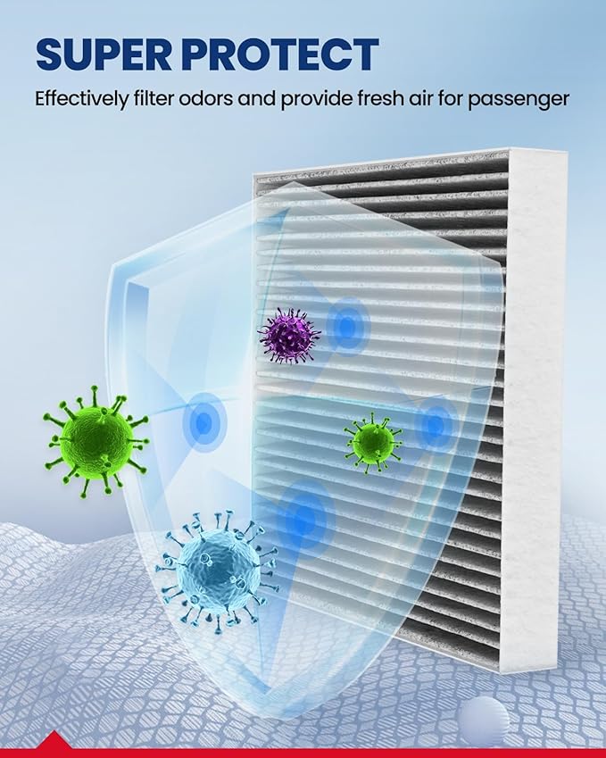 - Multilayer Filtration: KAX cabin filter uses high quality activated carbon to effectively absorb harmful gases and odours in the vehicle, three layers that provide up to 98.8% filtration,providing clean and fresh breezy air for the driver and passengers.