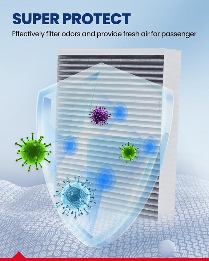 - Multilayer Filtration: KAX cabin filter uses high quality activated carbon to effectively absorb harmful gases and odours in the vehicle, three layers that provide up to 98.8% filtration,providing clean and fresh breezy air for the driver and passengers.