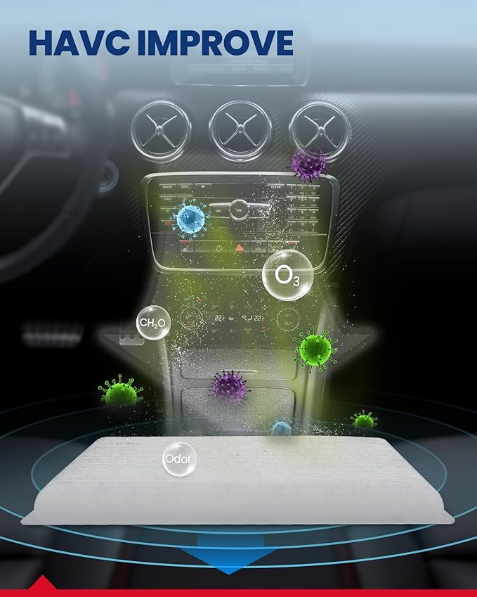 - Advaced Material: Compared with standard cabin air filter, newly material KAX is made of three highly efficient filter materials: long-fiber electrostatic cloth, activated carbon, and acrylic resin-coated filter paper. Newly material can remove 99.9% of harmful pollutants