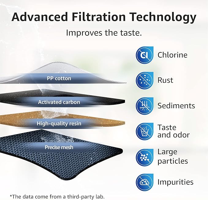 - Product Benefits : NSF 42 and 372 certified; Reduce 93.9% of chlorine, taste, and odor; Efficient filtration