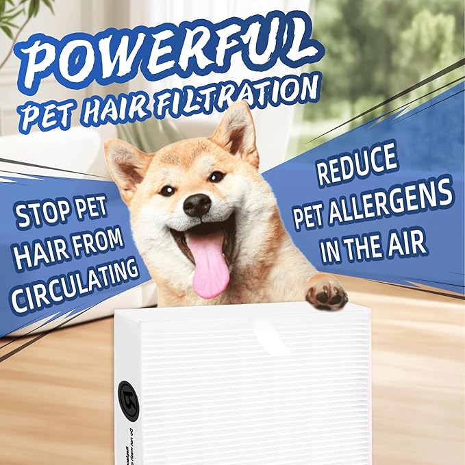 - [Superior Filtration Systems]: True HEPA System High Efficiency Activated Carbon Filter, H13 Grade True HEPA Filter. Works 99.97% of airborne particles as small as 0.3 microns in size to attach, protecting your home from pet hair, pet dander and odors.