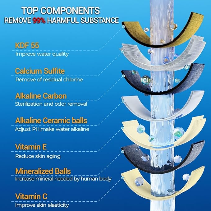 - PREMIUM CARE: Use our Shower Filter enjoy spa-like luxury at home with our 20-stage showerhead filter, which provides clean soft water for your body. Say goodbye to dry, itchy skin, dandruff, and eczema, and hello to improved skin, hair, and nail condition!