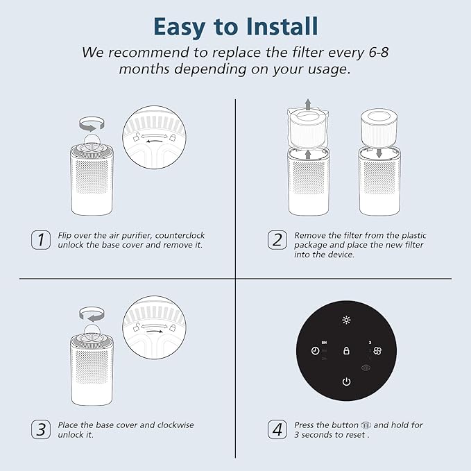 - REPLACE REGULARLY - We recommend you to replace air puri-fier replacement filter for Hynik Alviera HH001 every 6-8 months for the optimal performance, depends on your usage or living environment. No tools required to replace the HH001 air filter for Hynik Alviera, make you easier!