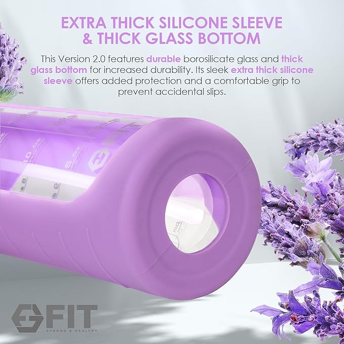 - Upgraded design and fun colors to choose from: Introducing our upgraded original aesthetic water bottle; this new version features an extra thick silicone sleeve, providing added protection, insulation, and a secure grip; crafted from thick borosilicate glass, it's ideal for home, office, or gym use; we've also upgraded one of the lids to a convenient straw lid, perfect for sipping on the go; choose from various colorful removable sleeves to personalize your style; have fun picking your color
