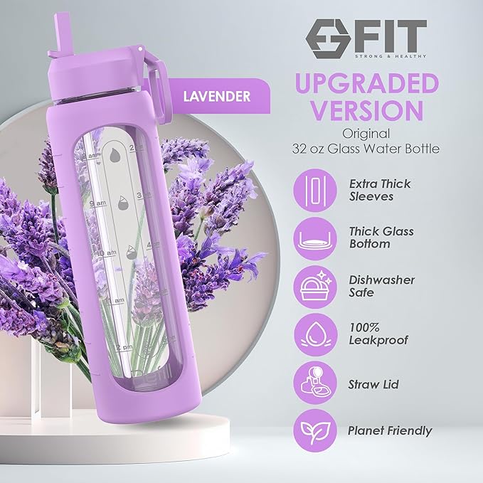 - Clear View and Taste: Our durable motivational glass water bottles are made from high-quality glass, offering you a clear view of your refreshing beverages and a clean taste without any plastic aftertaste to worry about; the dishwasher-safe feature (not for Hi-temp wash setting) adds to its convenience; remember to handle it with care and avoid accidental drops; these glass waler bottles are both functional and make great gifts so treat yourself or surprise a loved one now with our 32 ounces glass water bottle